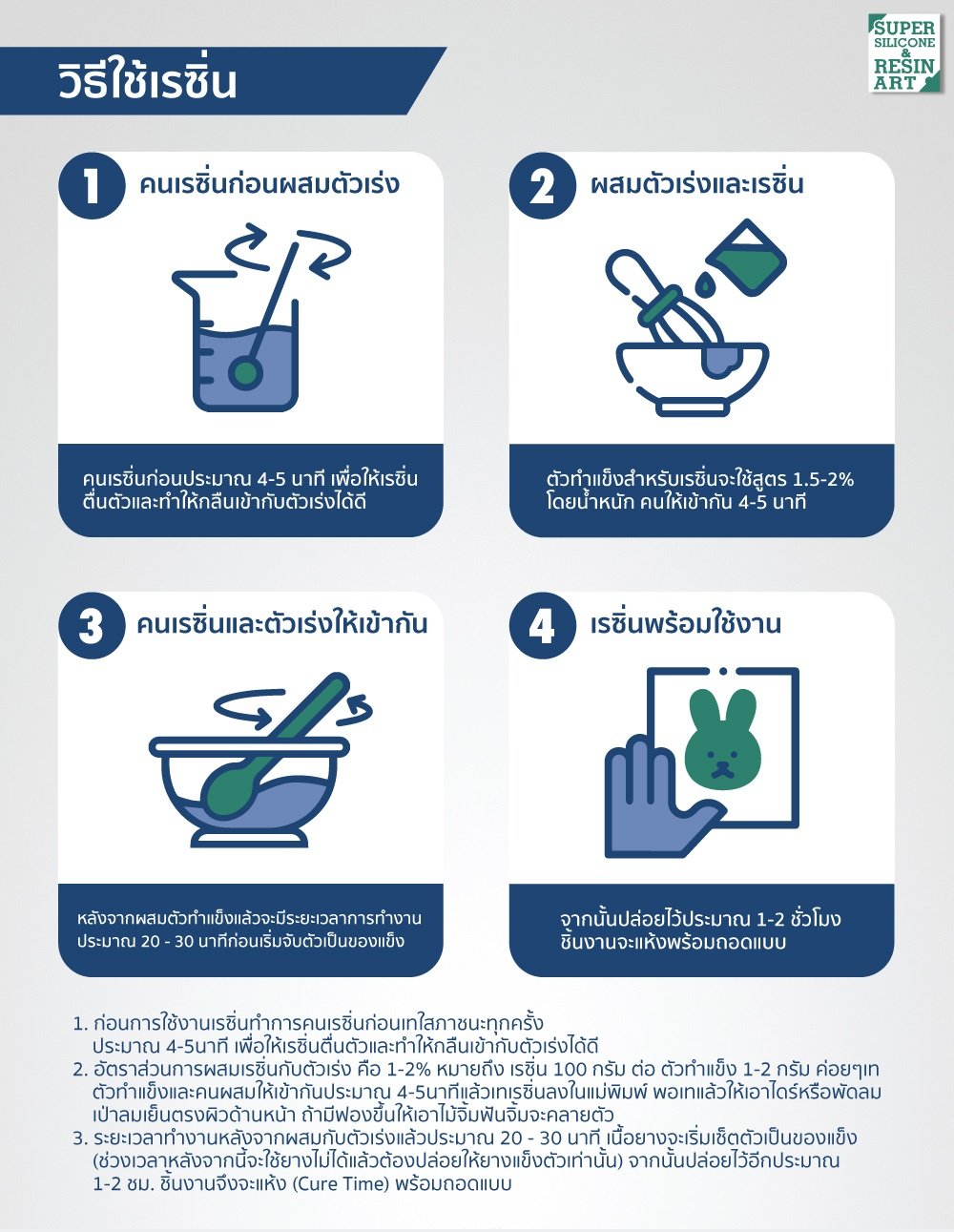 ซึ่งขั้นตอนนี้มีความสำคัญมาก เพราะถ้าทำไม่ถูกต้องก็จะทำให้คุณไม่ได้ผลิตภัณฑ์เรซิ่นตามที่ต้องการ หรือพอได้มาแล้วผลิตภัณฑ์และชิ้นงานไม่คงทน