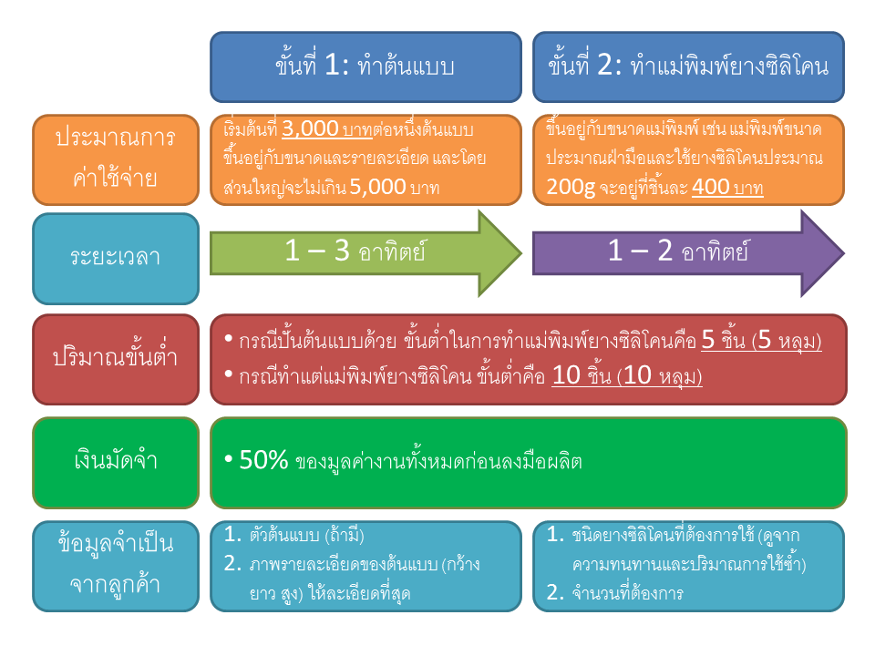 (ประมาณการค่าใช้จ่ายด้านบนยังไม่รวมค่าจัดส่งตัวต้นแบบและแม่พิมพ์ยางซิลิโคนถึงมือลูกค้า)